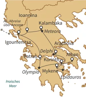 Die Reisesaison neigt sich langsam dem Ende entgegen, aber für unsere traditionelle Premium-Abschlussfahrt haben wir noch einen echten Leckerbissen, ein Highlight das seines gleichen sucht für Sie. Erleben Sie eine umfassende Rundreise durch eines der schönsten und abwechslungsreichsten Länder Europas - Griechenland! Diese einmalige Kombination ermöglicht es Ihnen, das antike Hellas in seiner gesamten Schönheit, Historie und landschaftlichen Vielfalt kennenzulernen. Neben der Hauptstadt Athen, besichtigen Sie die antiken Kultstätten Olympia, Mykene und Delphi mit ihren sehenswerten Ausgrabungsstätten. Ein Höhepunkt wird sicher die Schifffahrt auf dem Kanal von Korinth. Wir haben für Sie bei dieser Reise wirklich alles inkluidert - alle Eintritte, alle Steuern und Gebühren, unseren 5*Superior Reisebus und das Alex Team wird zusätzlich noch von einem örtlichen Reiseliter unterstützt.